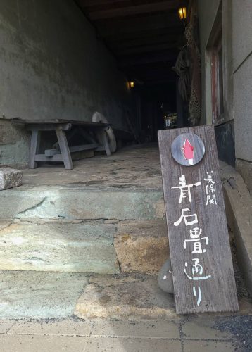 江戸時代後期、宿屋を兼ねた問屋が何軒も並んでいました。そこに積み荷を運ぶために石畳が敷き詰められ整備された道が「青石畳通り」となったそうです。