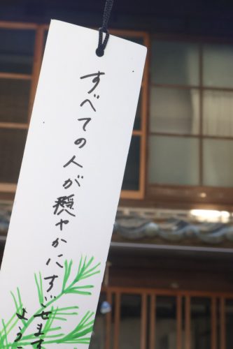 短冊には、世界の平和を願う願い事が数多く書かれていました。