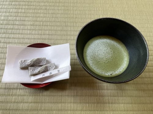 お庭を見ながら、お抹茶を頂くこともでき、ゆったりと時間を過ごすことができます。