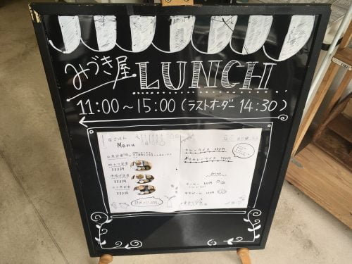 ランチのメニューです。土日のみ、お店の中で食べることができます。