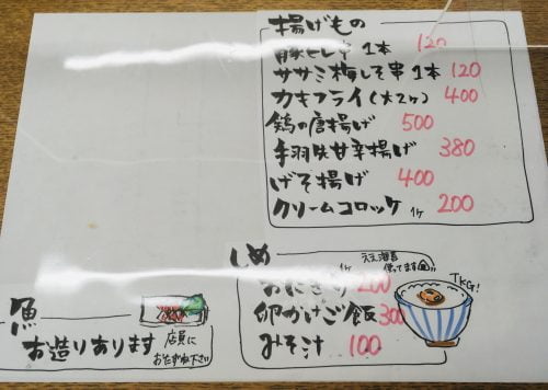 店内で飲食する場合は、揚げ物やお刺身などの注文もできます。
