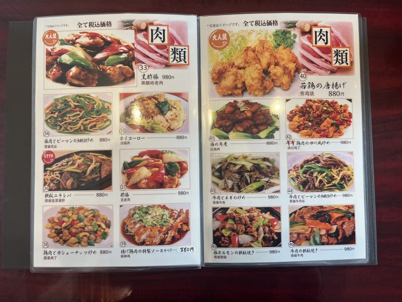 単品メニューもたくさんあります。豚の角煮 880円、ホイコーロー 880円、チャーハン 580円、焼肉飯 780円等。