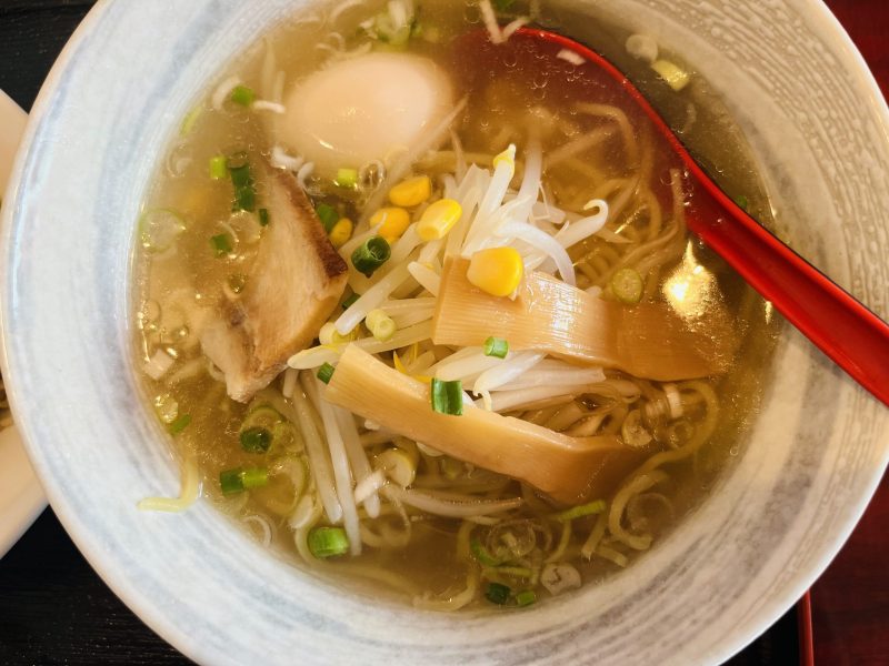 ラーメンは卵やチャーシュー、もやしもたくさん入って、味もしっかりしたスープで美味しい。