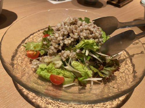 いつもの私ならシーザーサラダに行くと事ですが今回は蕎麦の実という単語に釣られてこちらにしました。