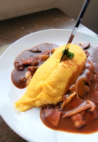 オムライスのメニューは、週替わりとなっています。取材時のこの日は、合鴨とズッキーニのオムライスでした。
