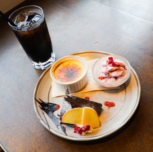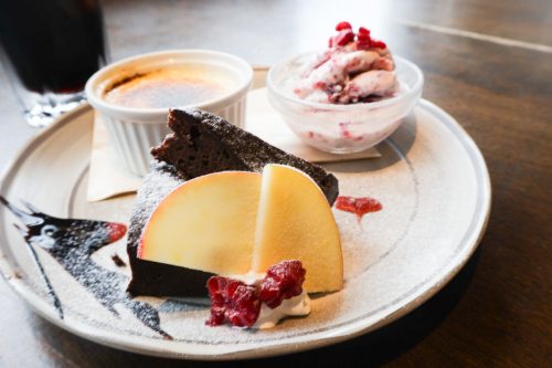 食後には、ランチタイム限定、ご褒美スイーツとして、プラス500円で、好きなデザートを3種類選ぶとワンプレートに盛り合わせてくれます。