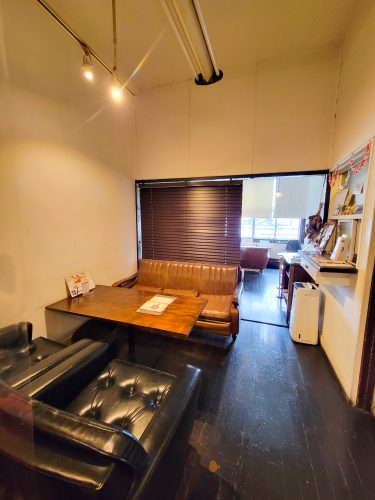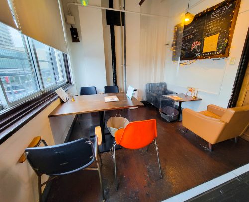 場所によってテーブルも椅子も様々。シックで落ち着いた雰囲気の店内。