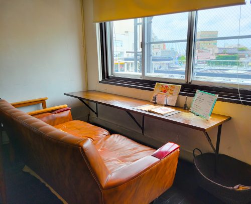 窓から見えるのは、若桜街道。行き交う車やにぎやかな街の様子が見渡せます。