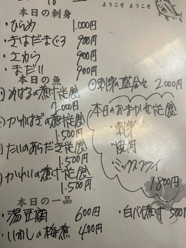 その日ごとにオススメの魚が違う本日のおすすめメニューから選ぶのも良いですね。