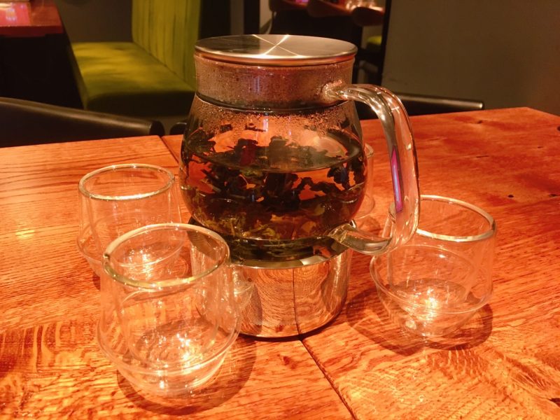 まず席に着くと、ランチメニューのセットになっている烏龍茶のポットが運ばれてきます。
