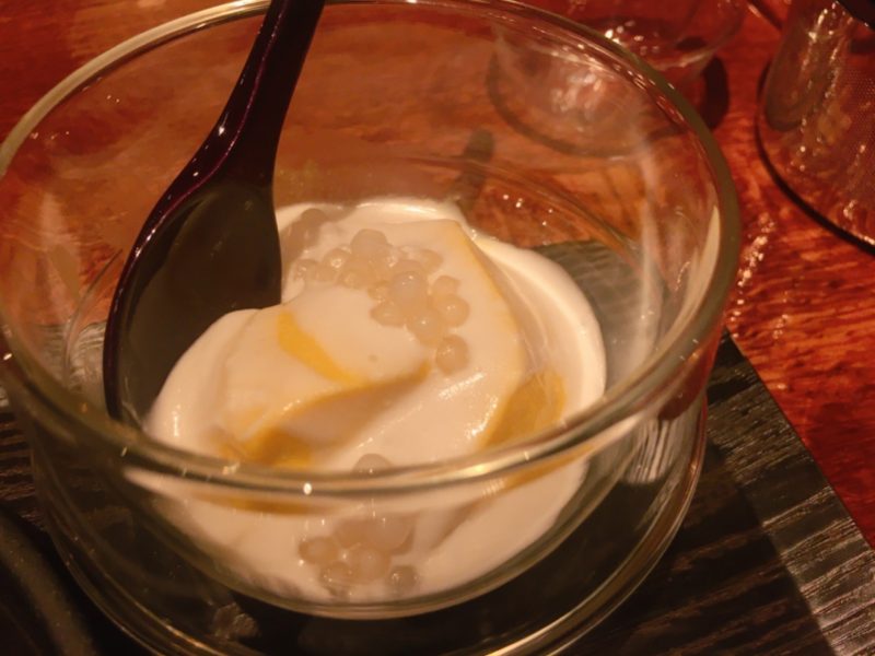 食後のマンゴープリンはとろとろで、マンゴーの味もしっかりしています。