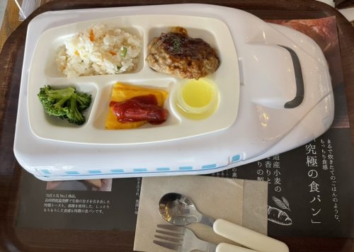 こちらのお店は、N700系新幹線の器が使用されいてかわいい!おもちゃ付きなので子どもも大喜びですよ♪