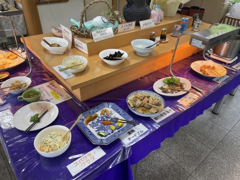 コロナウイルス感染の対策もしっかりされていて、バイキング用の手袋も準備されています。