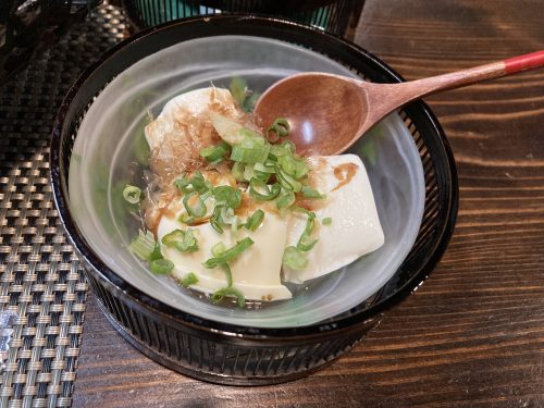 店主こだわりの冷ややっこは、京都からのお取り寄せだそう。