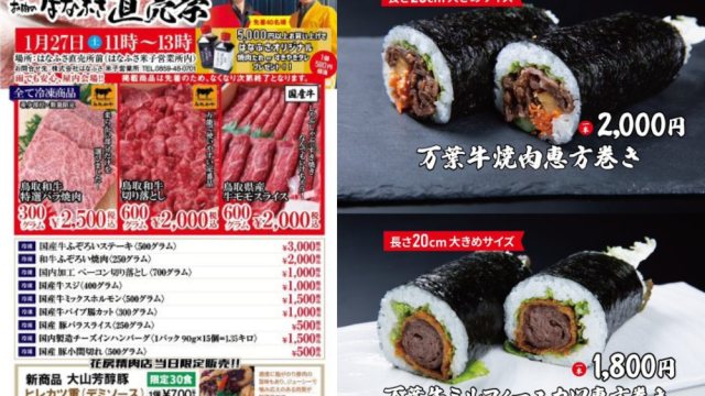 花房精肉店では、現在、”万葉牛の恵方巻”の予約受付中です。