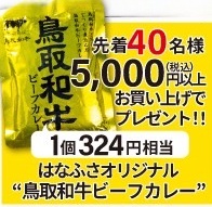 5,000円以上お買い上げの先着40名様には、はなふさオリジナル「鳥取和牛ビーフカレー」(1個324円相当)を1個プレゼント。