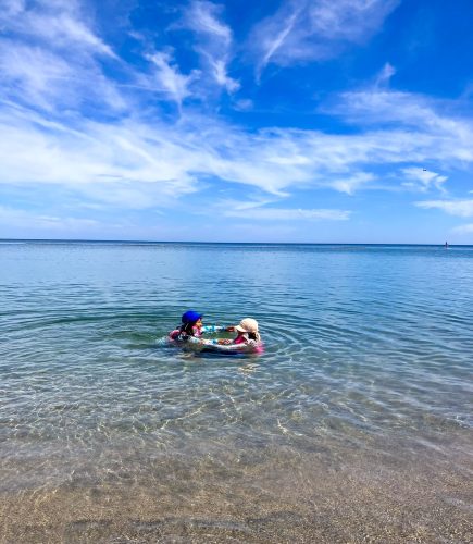 「皆生温泉海遊ビーチ」で子供達と泳いだり、