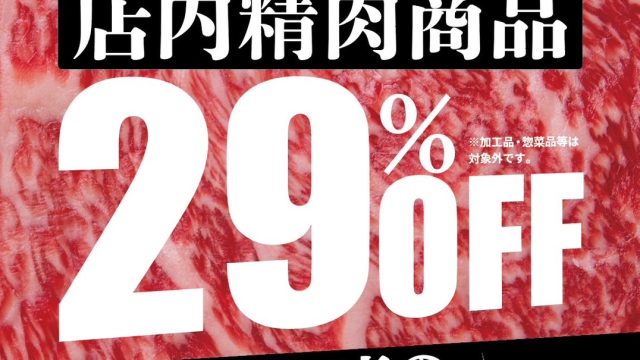 今回のセールは店内精肉商品29%OFF。(加工品、惣菜品などは対象外)