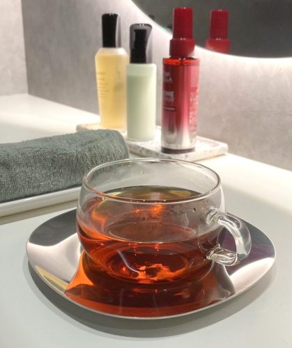施術中は、美容師がセレクトしたおすすめのお茶を飲みながら、ゆったりとした気持ちで過ごせます。