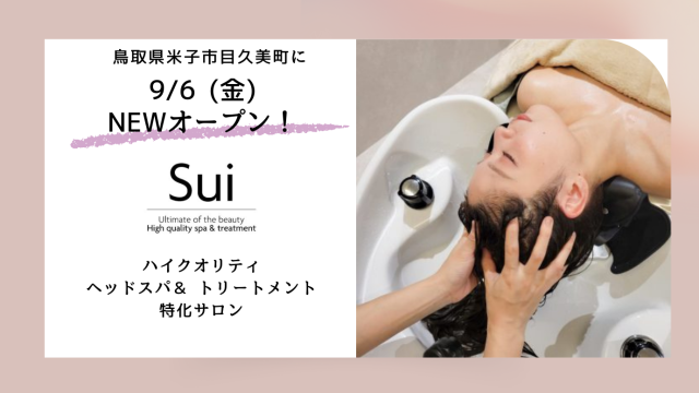 2024年9月6日(金)、鳥取県米子市目久美町に、ヘッドスパとトリートメントに特化したサロン「Sui」がオープンします。