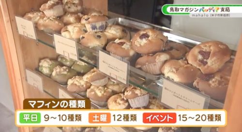 マフィンの種類は平日9~10種類。土曜は12種類。イベント時は15~20種類並びます。
