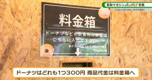 ドーナツはどれも1個300円。商品の代金を料金箱に入れて支払い完了というシンプルな仕組みです。