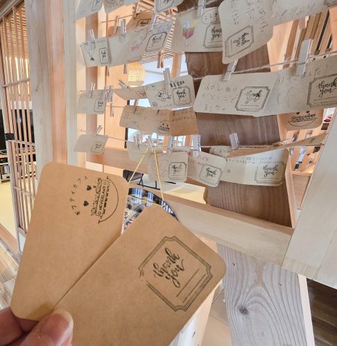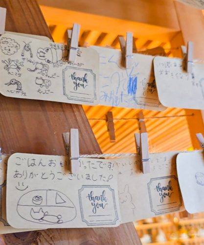 子どもたちは利用したチケットに、お礼のメッセージを書いて「ギフティボード」に吊るして帰ります。