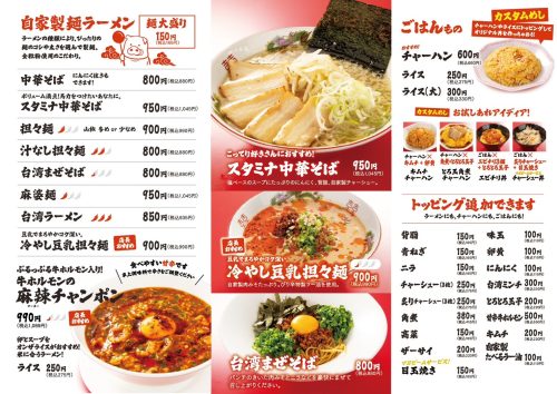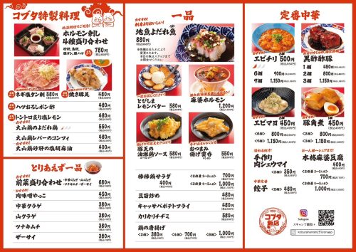 そのほか、コブタ飯店特製料理や一品料理、定番中華メニューなどバリエーション豊かなメニューも揃っています。
