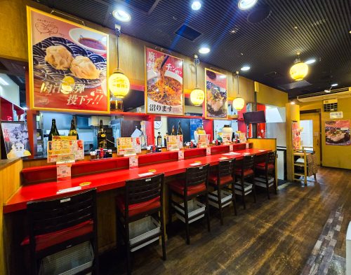 赤を基調とした店内は「町中華」ならではのどこか懐かしさを感じる雰囲気。