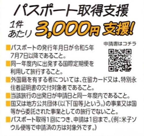 ■パスポート取得1回につき、申請は1回まで 。(例:米子ソウル便等で申請済の方は対象外です。)