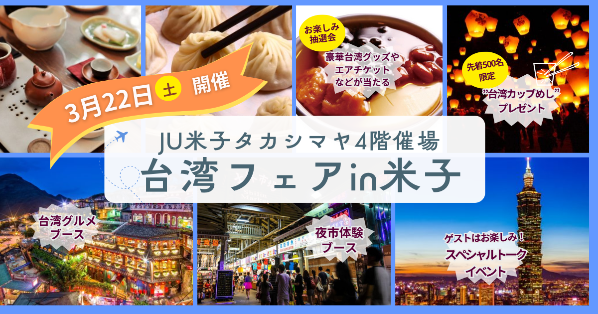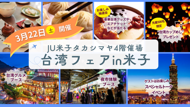 2025年3月22日 (土)「JU米子タカシマヤ4階催場」にて『台湾フェアin米子』が開催されます。入場は無料。開催時間は11:00~15:00です。