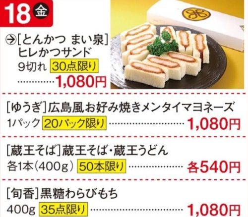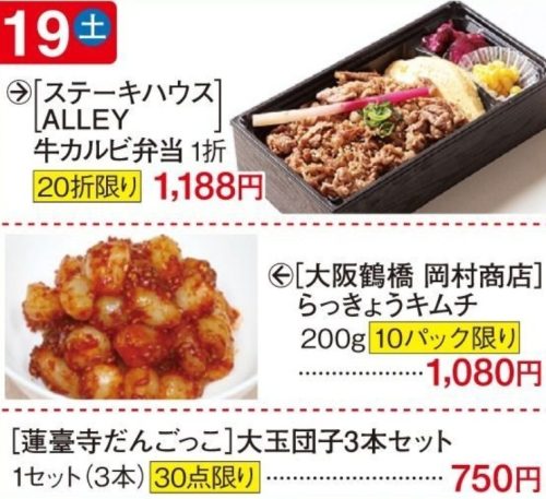 その他、日替わり奉仕品もあります。※こちらは数に限りがあります。購入希望の方はお早めの来店をおすすめします。