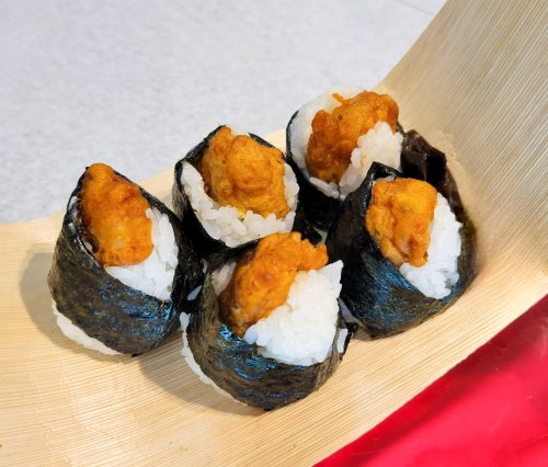 冷めても美味しい米を使用。揚げたてのカリッとしたエビが入った、一口サイズの天むすです。