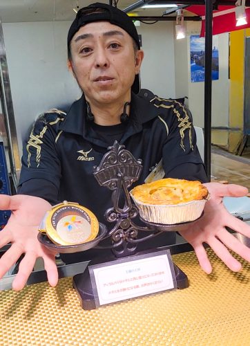 長野オリンピックスキージャンプ金メダリストの船木和喜さんのお店『王様の工房』のブースでは、期間中、船木和喜さんが来店。店頭でアップルパイの販売をされています。