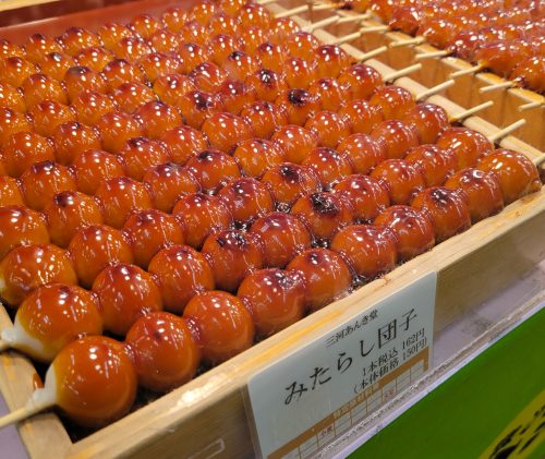 杵つきのもちもち食感が楽しめる『三河あんき堂』のみたらしだんご。網焼きの香ばしい焼き団子です。