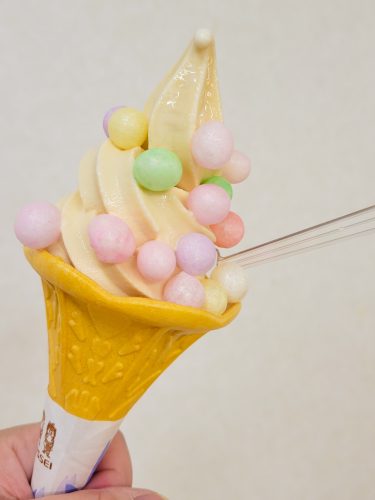 ピンクや紫、緑のカラフルな”おいりトッピング”は、軽くてサクサク。食感を楽しんで。見た目も可愛いです!