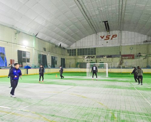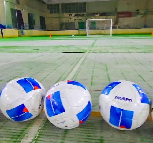 さんびるサッカースクールの練習は、週2回、米子市内のスポーツ施設で行われています。(※この日は「やまつみスポーツクラブ」での練習でした)