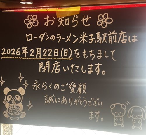 米子市の「ローダンのラーメン 米子駅前店」が、2026年2月22日(日)をもって閉店することが分かりました。