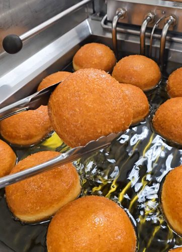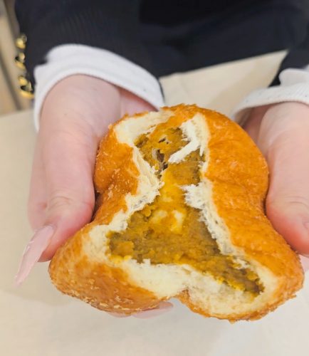 自慢のカレーをもちっとしたドーナツ生地で包みカリッと揚げた、人気のカレーパンです。