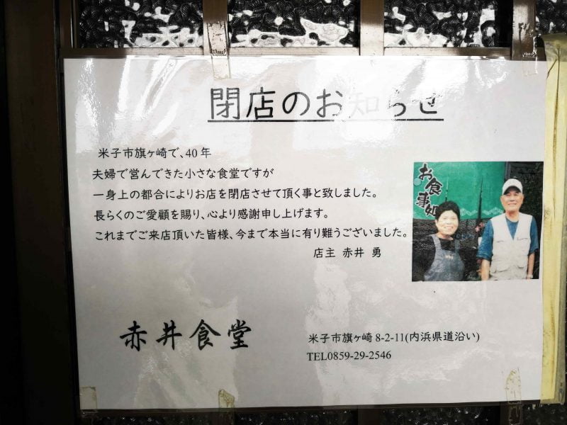 [米子市]40年の歴史「赤井食堂」が閉店してた。