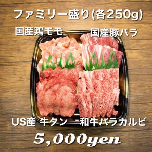 「ファミリー盛り」と「牛肉尽くし盛り」(どちらも30〜40セット限定)予約特典は「はなふさ焼肉のタレ」。