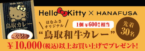 10,000円以上お買い上げの方に『鳥取和牛カレー(Hello Kitty × HANAFUSA コラボ)』をプレゼント!30名限定です。