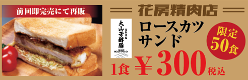 その他『花房精肉店』では「 ロースカツサンド」を1食300円(税込)で販売します。こちらは限定50食です。前回即完売!