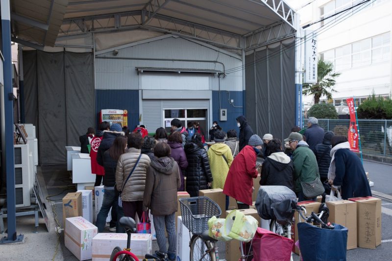 (写真は以前開催された大阪営業所での様子です。今回はコーンを置き、密集をさけるため順番に並んでいただく形になるそうです。待ち時間があるかもしれませんので、心づもりお願いします。)