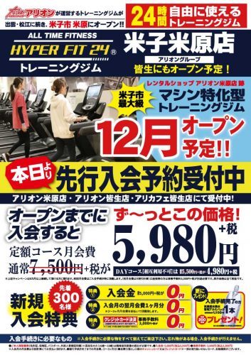 米子市にマシン特化型、24時間、年中無休のスポーツジム「ハイパーフィット24 米子米原店」が2019年12月16日にグランドオープンしました。