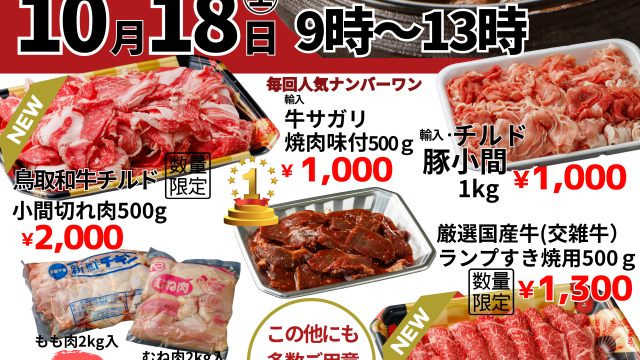 [境港市]お肉の工場直売セール!10月18日(土)9-13時限定
