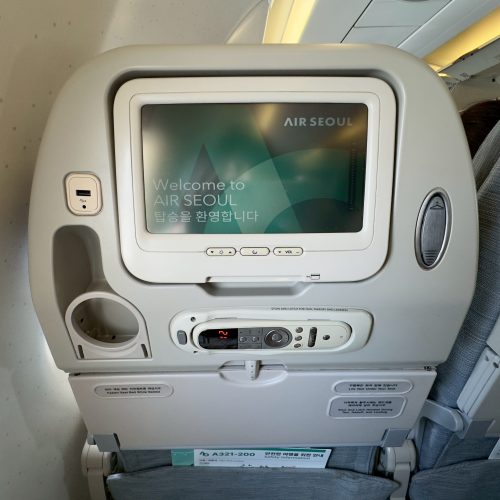 座席にはモニターが設置されていますが、コンテンツ(動画など)は基本的に韓国語です。機内WiFiもありませんので、スマホに動画などをダウンロードしたり、携帯ゲーム機を持ち込むと良いでしょう。