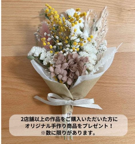 ◎当日場内2店舗以上(1店舗につき1会計で1000円以上)の作品をご購入いただいた方にミニブーケをプレゼント(1家庭1つまで。数量限定)