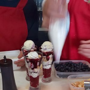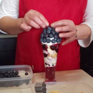 「このブルーベリーはとっても甘いから~」と手際よく盛り付けていきます。