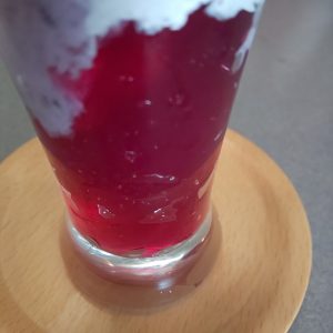 最後はぷりーん、つるーん、なんと、タピオカ!!自家製でブルーベリー味です。